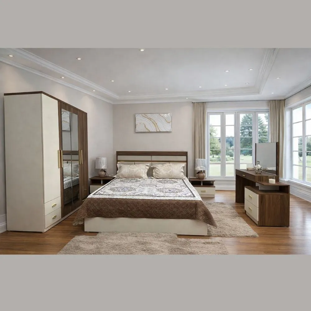 - Composition : Armoire + lit + commode + 2 tables de chevet