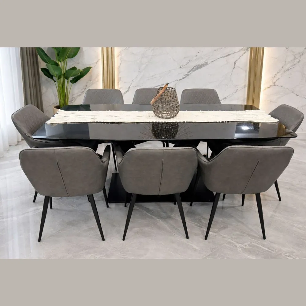 Un ensemble table et chaises spacieux et raffiné, parfait pour sublimer votre espace repas avec confort et modernité.