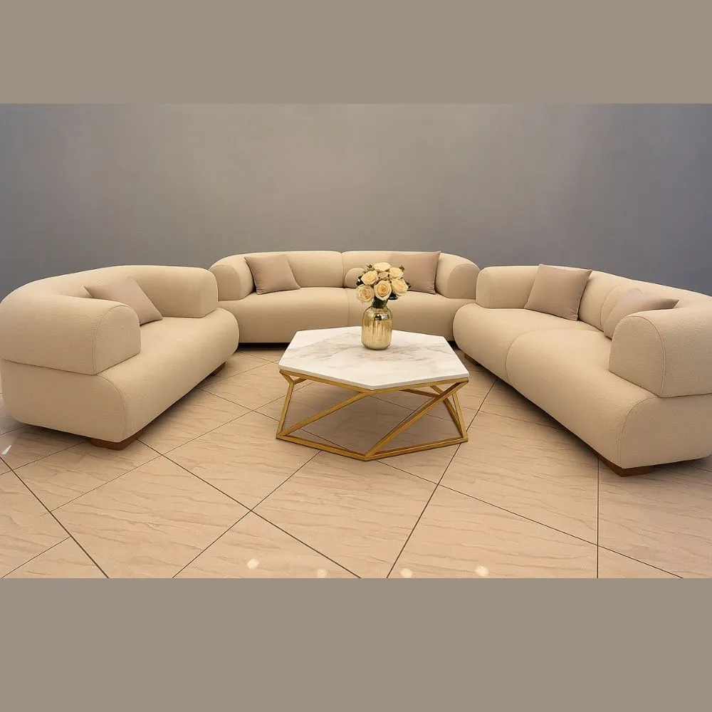 Le salon ELIOS 6 places séduit par ses lignes épurées et son design moderne, idéal pour un intérieur à la fois chaleureux et contemporain. Conçu pour accueillir toute la famille, il allie confort généreux, finitions soignées et matériaux durables.
