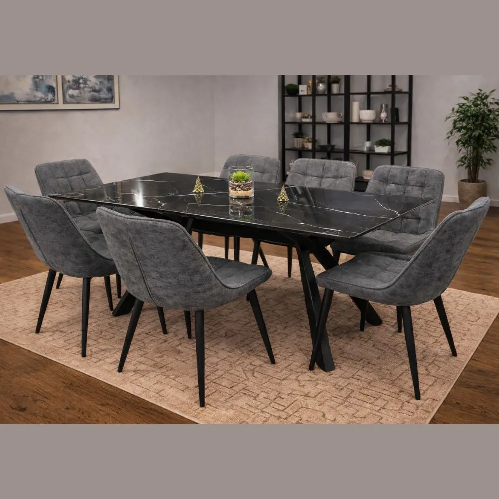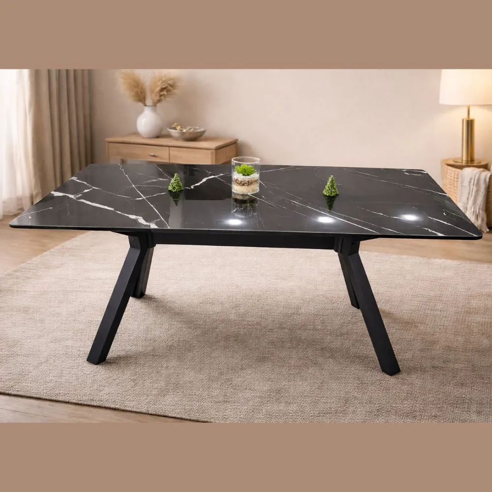 Table de Salle à Manger M013 en Porcelaine Effet Marbre Noir – 150×80 cm